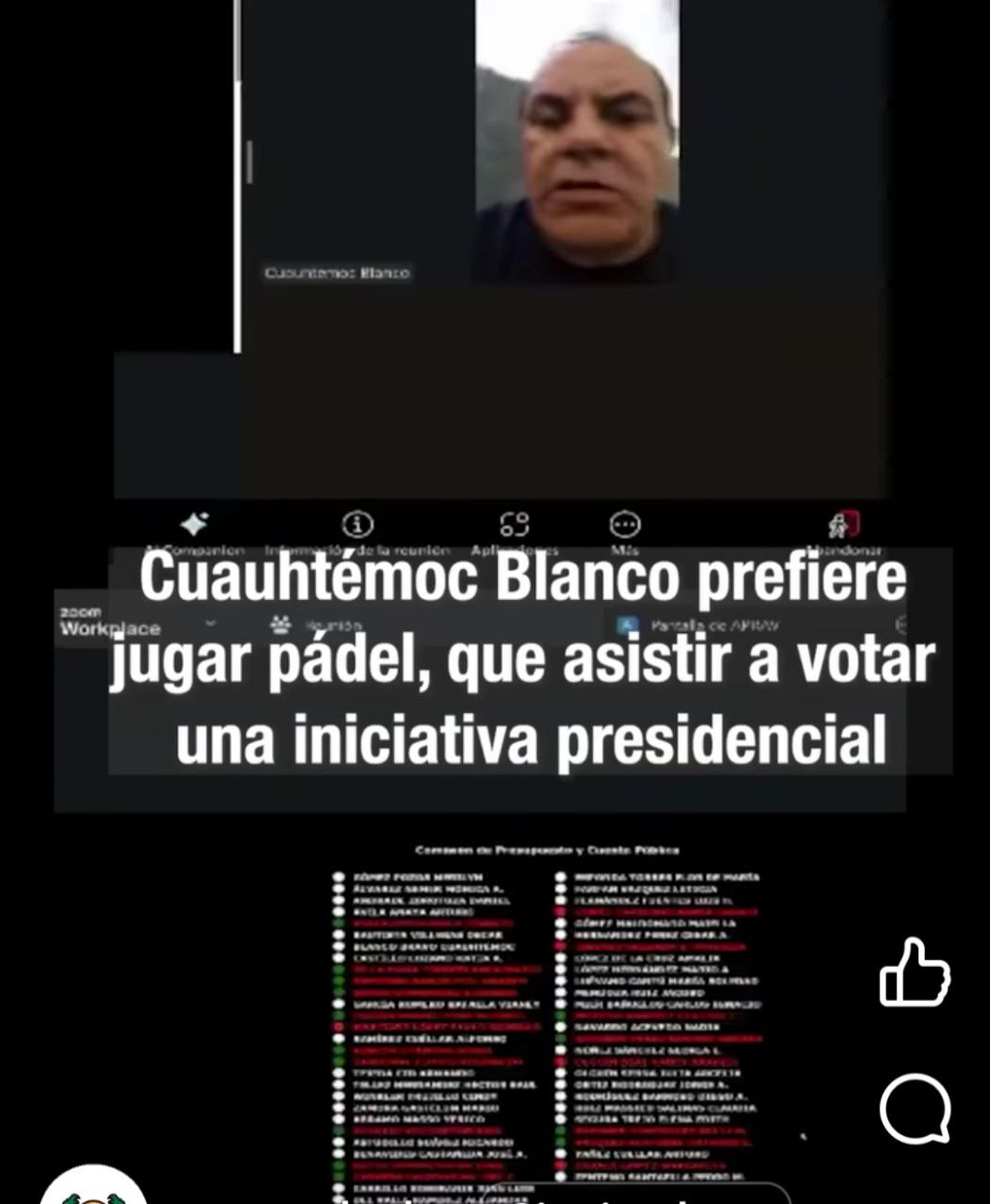 Aunque la reunión solo duró 20 minutos y cuando ya se votaba, la opinión de Blanco apareció en el sistema remoto de asistencia y votación, mientras en el fondo se escuchaban los golpes a la pelota.