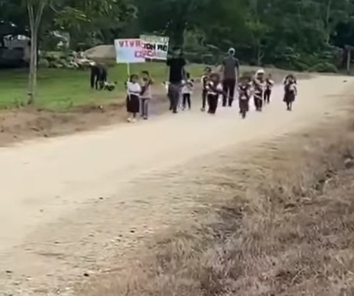 En Nueva Argentina, Maravilla Tenejapa, Chiapas, un maestro y un grupo de pequeños alumnos recorrieron un camino de terracería para rendir homenaje a la patria, demostrando que nuestros símbolos y tradiciones siguen vivos en cada rincón.