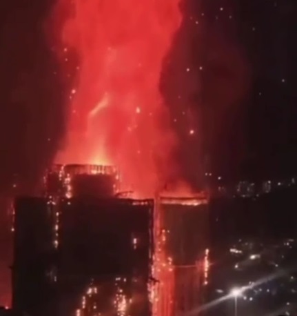 🌫️ Las imágenes difundidas muestran columnas de humo denso y partes del andamiaje colapsando, mientras los residentes intentan evacuar en medio del caos.