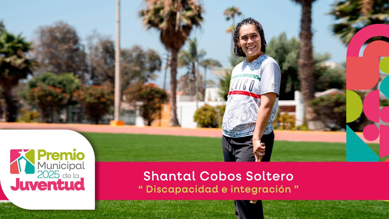 Shantal Cobos Soltero es una atleta de alto rendimiento con parálisis cerebral, pionera en su categoría como la primera bajacaliforniana en integrar la Selección Mexicana de Para Atletismo.