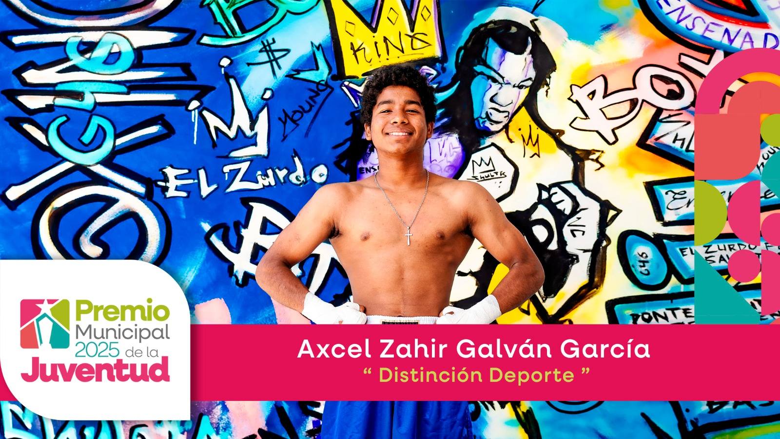 Axcel Zahir Galván García es un joven apasionado por el boxeo, deporte en el que ha demostrado gran disciplina, compromiso y logrado excelentes resultados, destacando en competencias estatales y municipales.